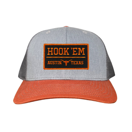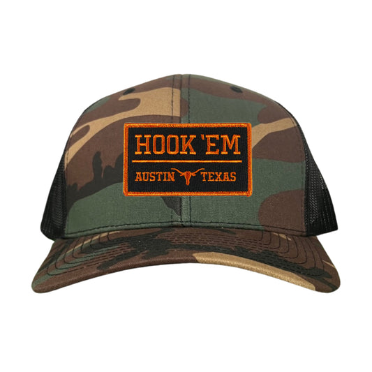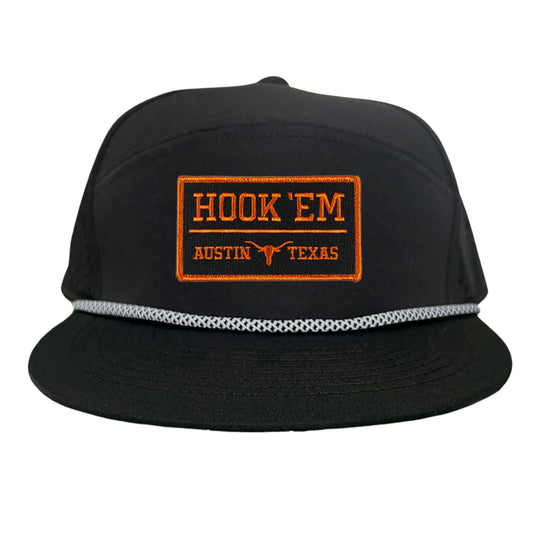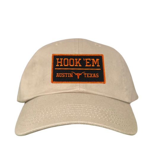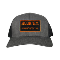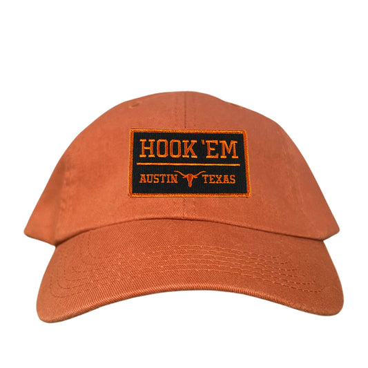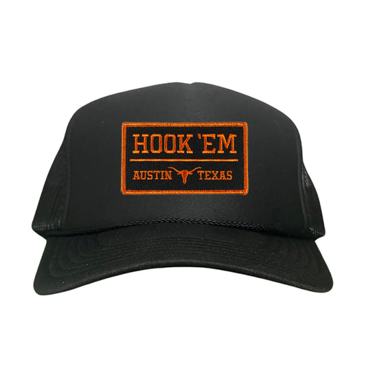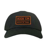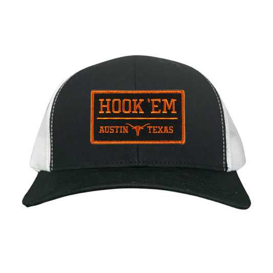 Texas Longhorns HOOK'EM Austin Texas Rectangle / Black - Burnt Orange Patch / Hats / 110 / UT9097b