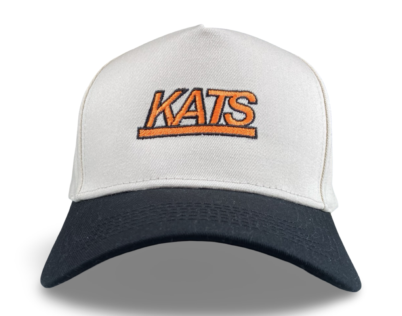 This is the hat that gets straight to the point. The Kats trucker hat features clean 'KATS' lettering in vibrant orange with a bold underline accent on a white mesh crown with a navy bill—a sleek, modern design that represents Sam Houston State with confidence and style.