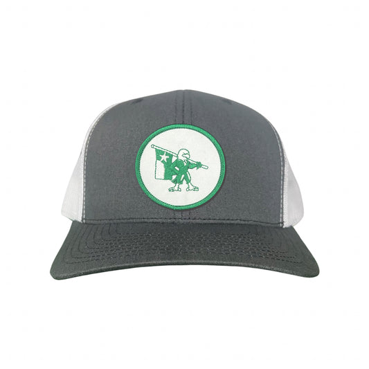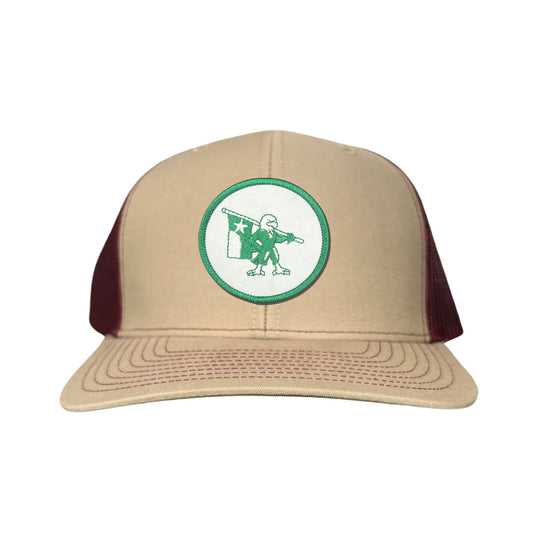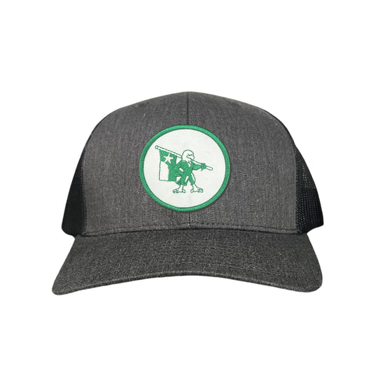 Introducing Last Stand Hat's UNT / Eagle Battle Flag Circle Hat. This hat features an Eagle Battle Flag Circle design prominently on the front panel and comes in a choice of styles. There is a classic Curved Bill Mesh Snapback, a modern Flat Bill Mesh Snapback, or a more casual Dad hat. The adjustable snapback provides a comfortable fit and these hats also come in a choice of colors. Last Stand's UNT design also offers a stylish look and is sure to make a statement. Show your UNT spirit with the UNT / Eagle Battle Flag Circle!