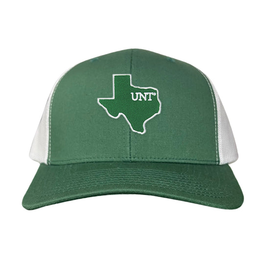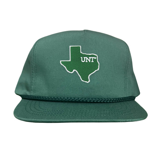 Show your school spirit with Last Stand's UNT / State of Texas UNT hat. This stylish hat featuring a Last Stand design of the state of Texas in bold Green with UNT embroidered on the front is sure to make you stand out in the crowd. Choose from a Curved Bill Mesh Snapback, a Flat Bill Mesh Snapback, or a more casual Dad hat for a perfect match to your style.