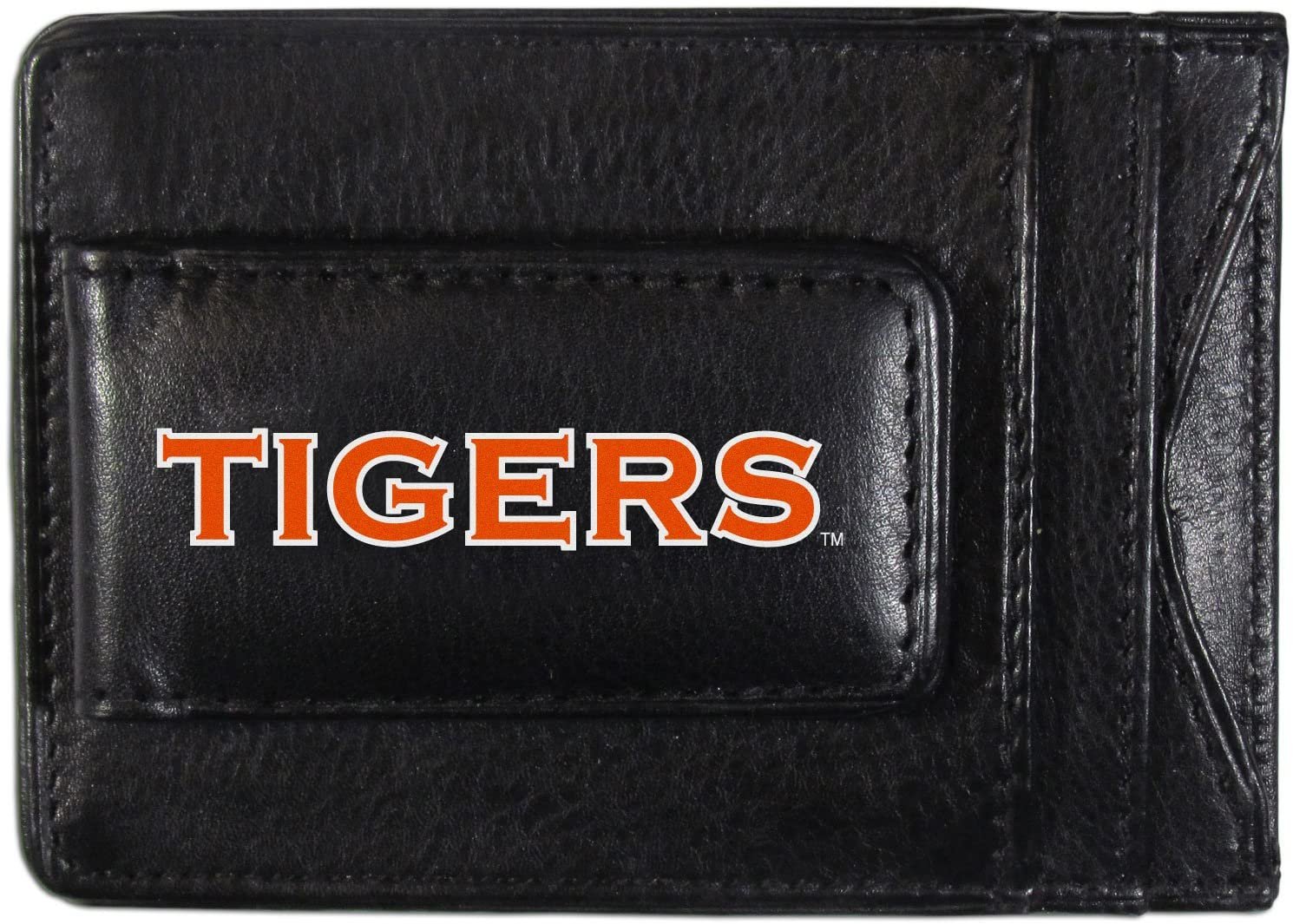This super slim leather wallet lets you have all the benefits of a money clip while keeping the organization of a wallet. On one side of this front pocket wallet there is a strong, magnetic money clip to keep your cash easily accessible and the Auburn Tigers team logo on the front. The versatile men's accessory is a perfect addition to your fan apparel.