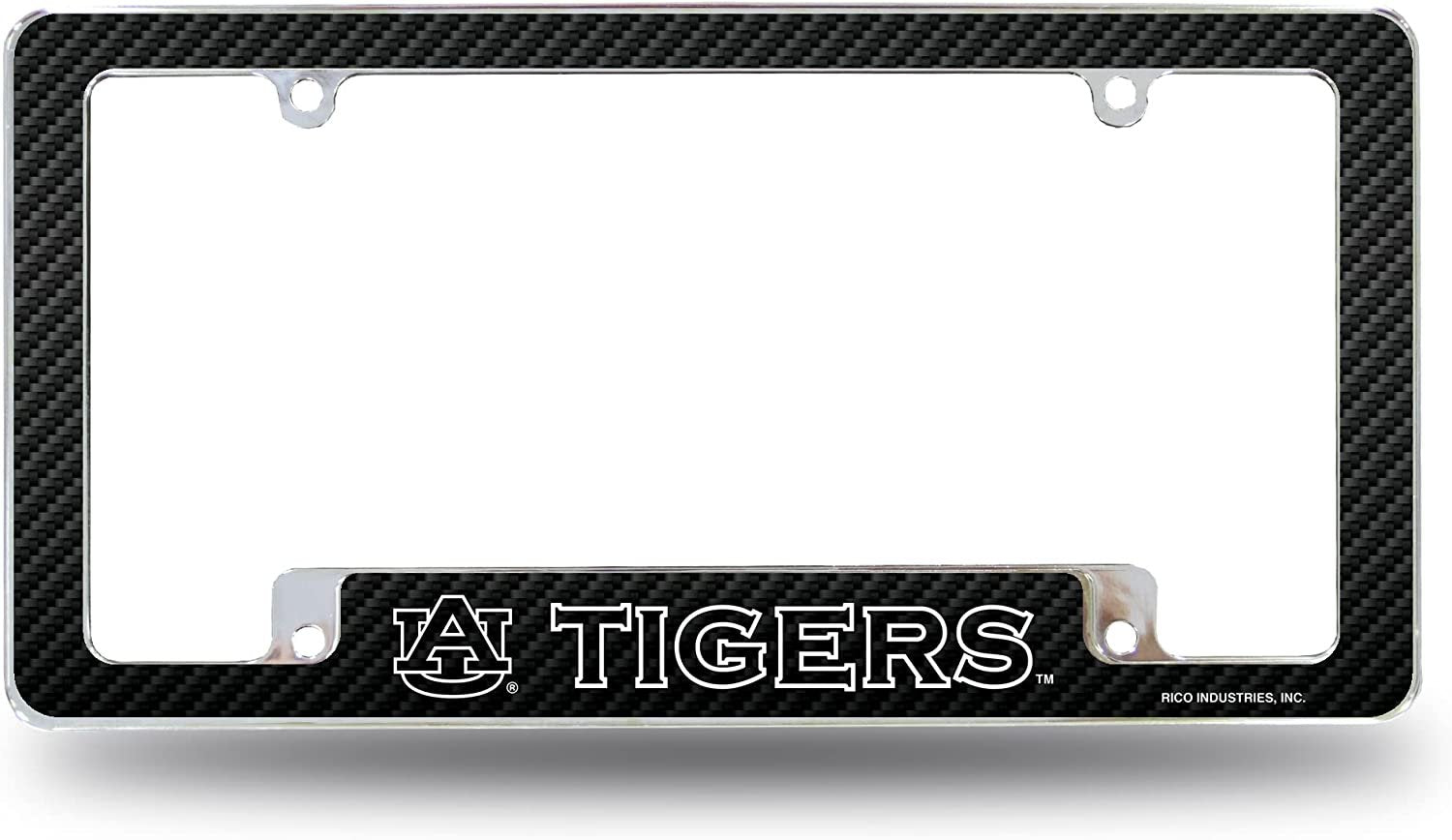 Auburn University Tigers Metal License Plate Frame Chrome Tag Cover Carbon Fiber Design 6x12 Inch