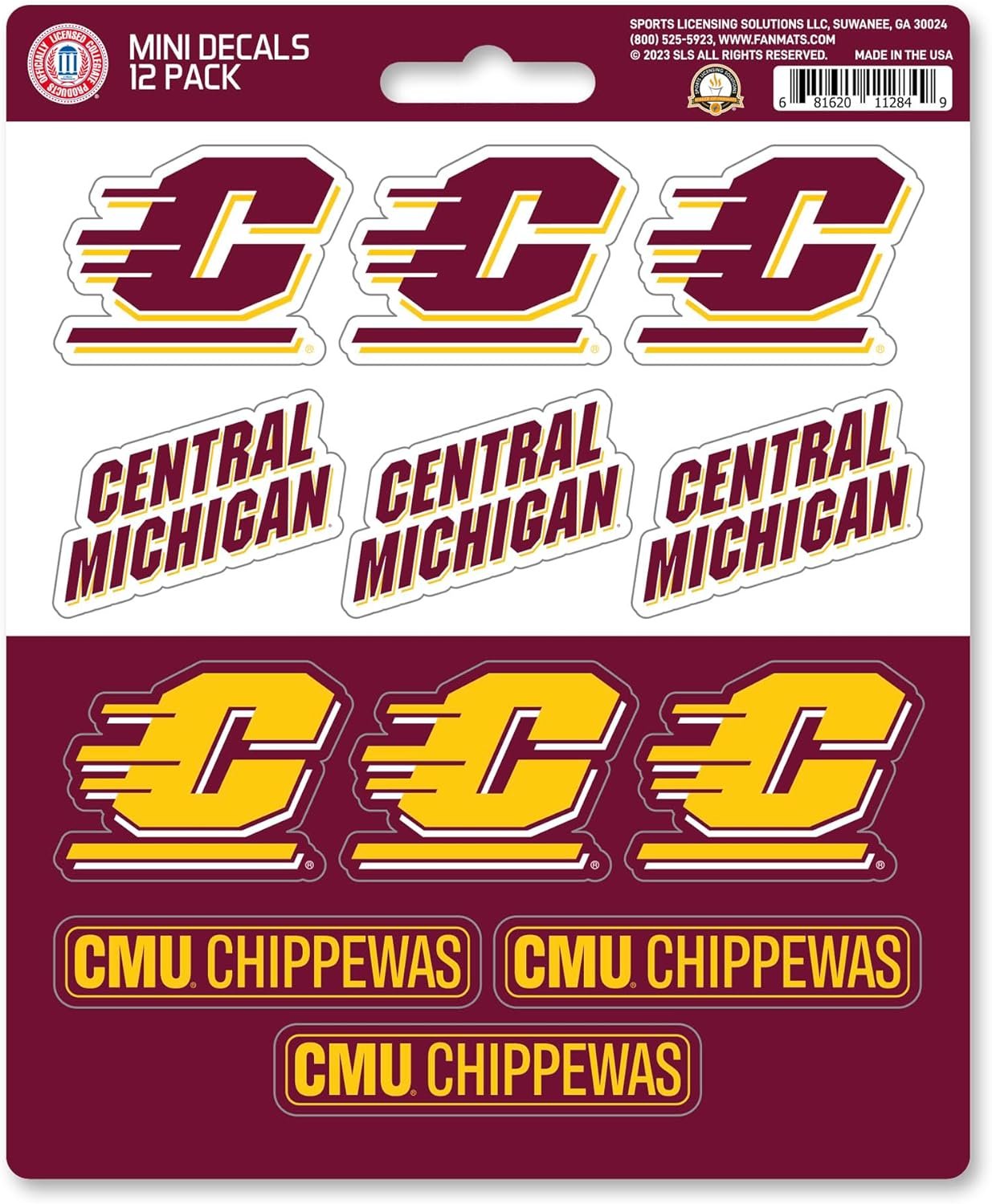 Central Michigan University Chippewas 12-Piece Mini Decal Sticker Set, 5x6 Inch Sheet, Gift for football fans for any hard surfaces around home, automotive, personal items