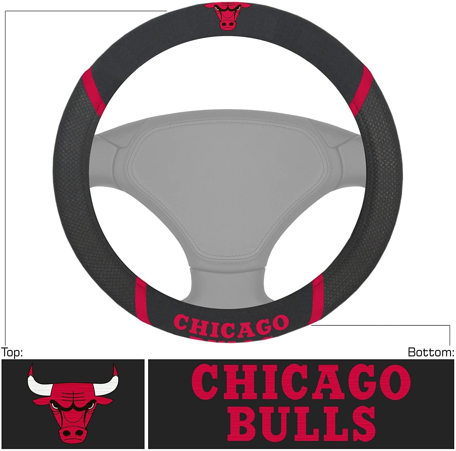 FANMATS NBA Chicago Bulls Steering Wheel Cover features your favorite team and dresses up your vehicle interior. Crafted with a combination of faux suede and mesh fabric, embroidered with your team logo and team name. Keeps your steering wheel cool in the summer and warm in the winter. Approximately 15 inches in diameter, the steering wheel cover fits most vehicles. Customize your ride and announce your team spirit with pride.