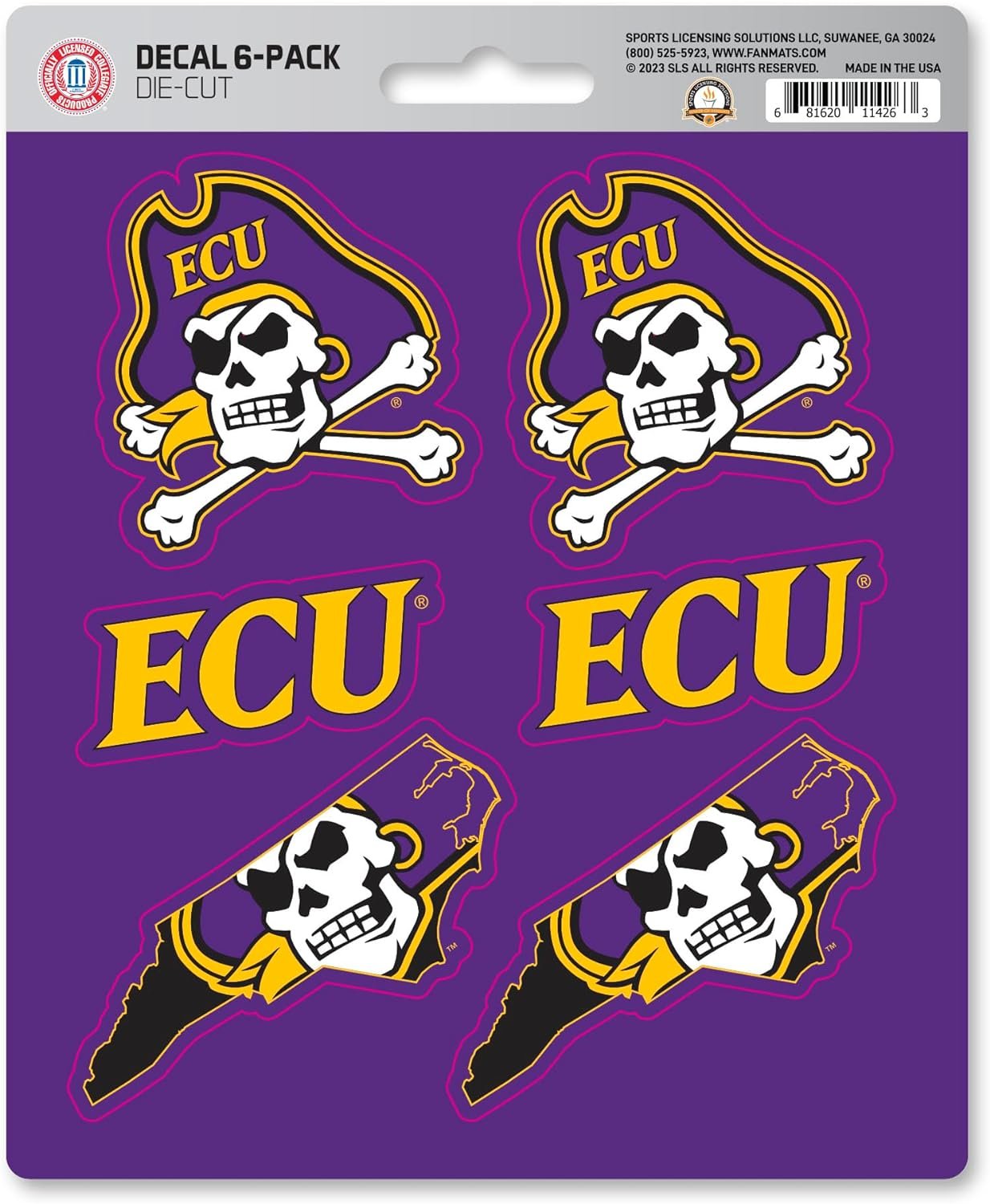 East Carolina University Pirates 6-Piece Decal Sticker Set, 5x6 Inch Sheet, Gift for football fans for any hard surfaces around home, automotive, personal items