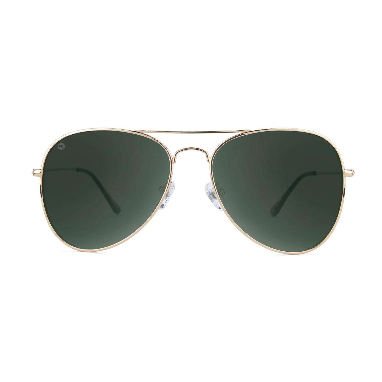 With crystal-clear optics thanks to the polarized lenses, and all-day comfort thanks to the rubber ear pads, these gold aviator sunglasses with green lenses are sure to become your new go-to eyewear. They feature a classic and timeless aviator shape plus rubber tortoise shell detailing for an extra pop of style. Plus, every pair of pilot-inspired aviator sunglasses from Knockaround is finished with impact-resistant, UV400 protection lenses to keep your eyes safe. Just add your favorite bomber jacket and you're all set.
