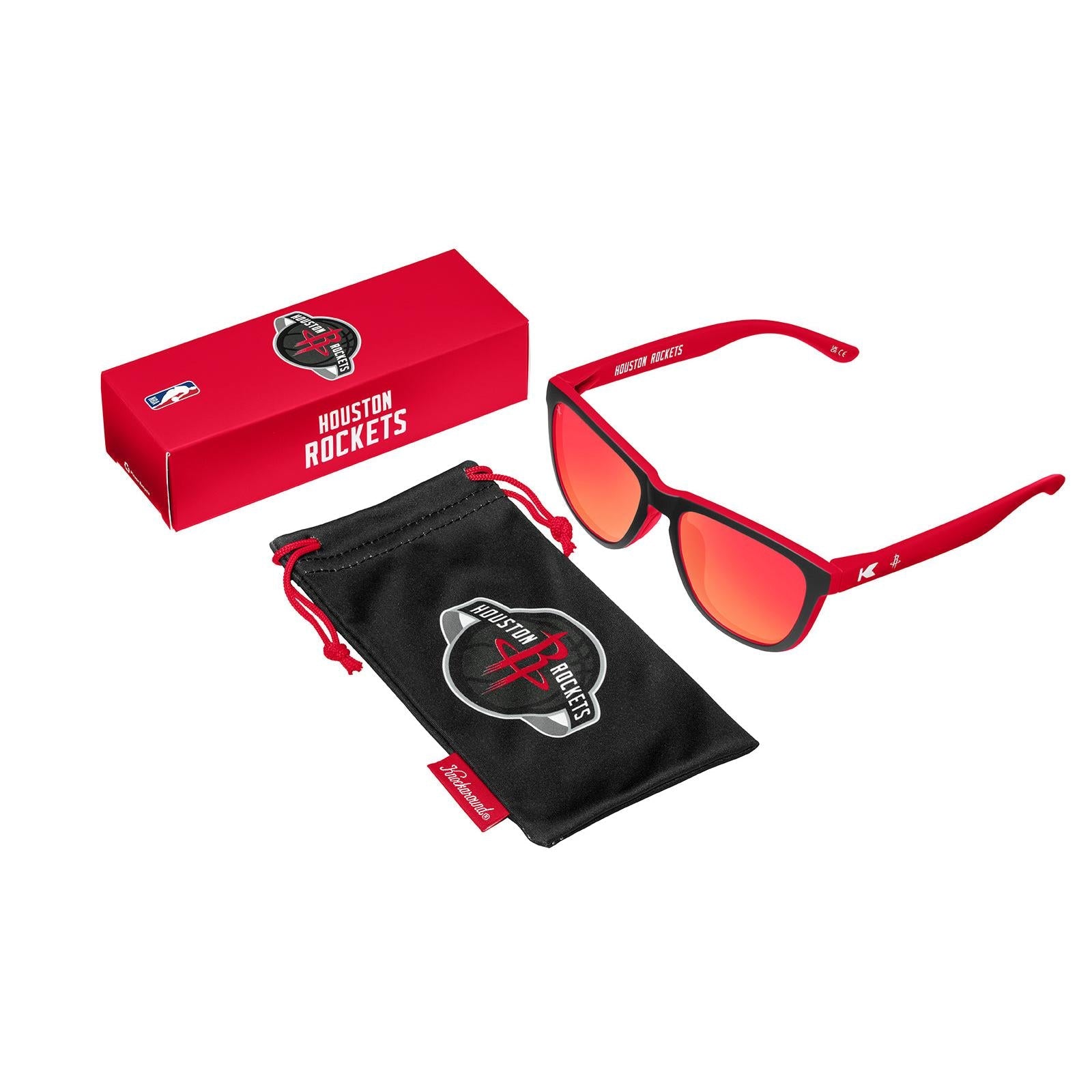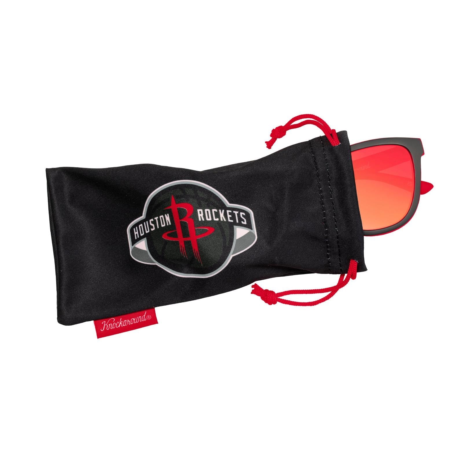 • Rubberized red arm interiors feature the Rockets logo on the right side and the Knockaround x NBA logo on the left