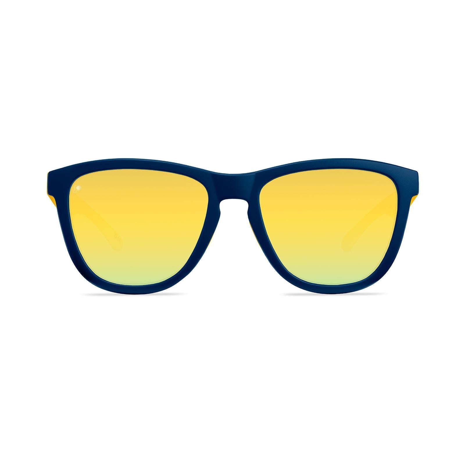 • Rubberized yellow arm interiors feature the Pacers logo on the right side and the Knockaround x NBA logo on the left