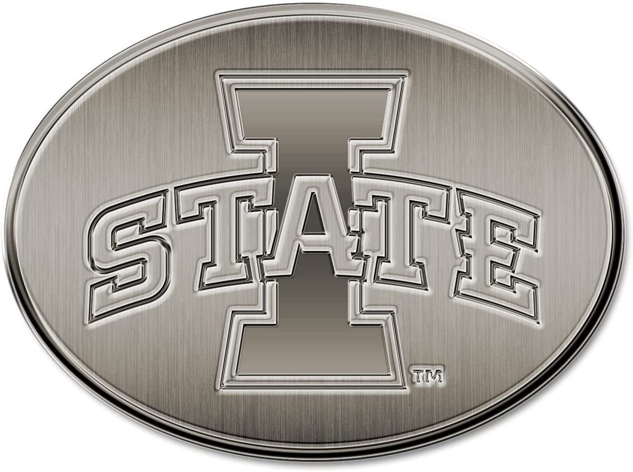 Iowa State University Cyclones Premium Solid Metal Raised Auto Emblem, Antique Nickel Finish, Shape Cut, Adhesive Backing