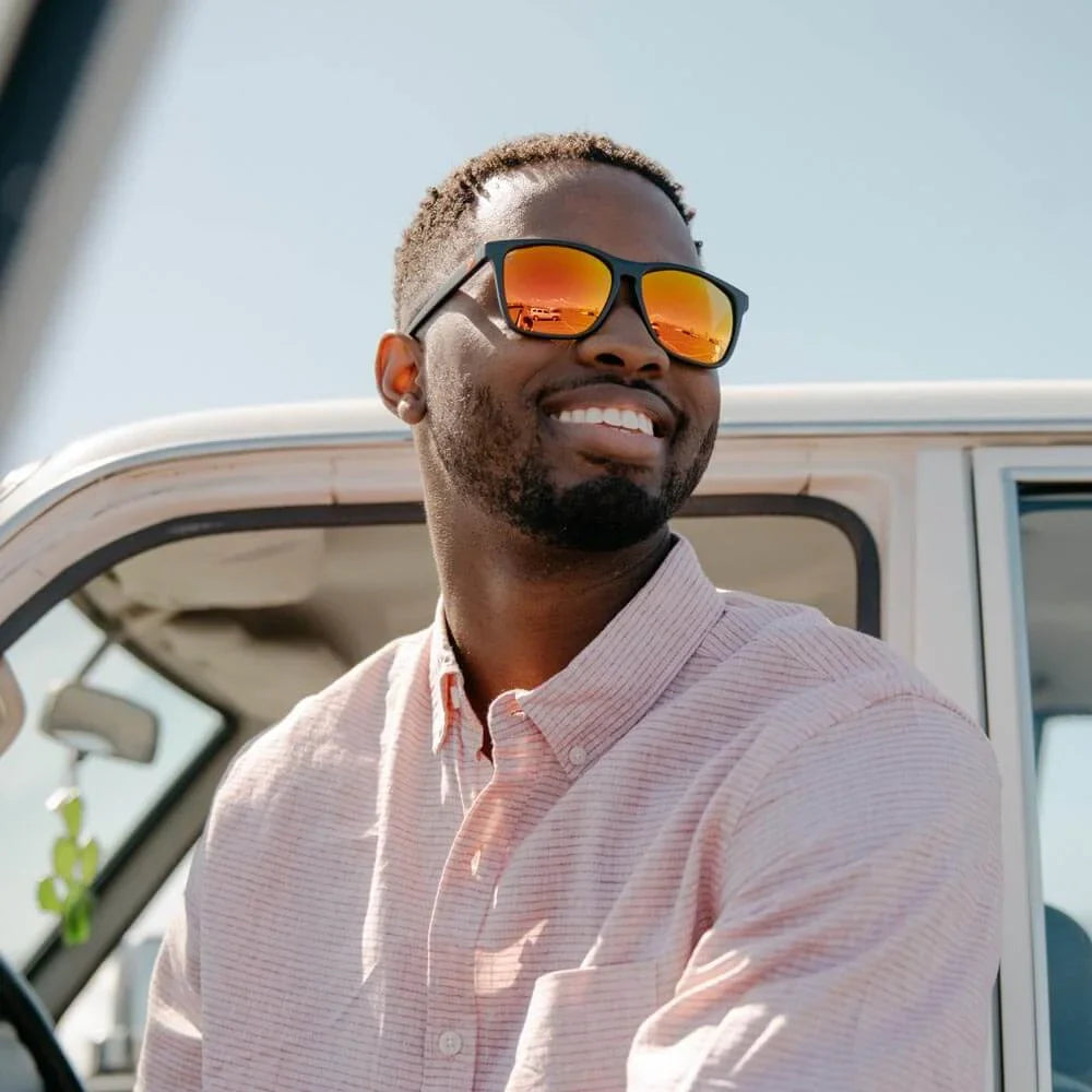 Bold, confident, and built for standout moments—our Matte Black / Sunset Fast Lanes bring serious heat to your everyday look. The clean matte black frames offer a sleek, modern edge, while the polarized red sunset lenses deliver a fiery pop of color that turns heads without trying too hard. Designed for comfort and durability, these sunglasses combine streamlined style with impact-resistant performance and full UV400 protection. Whether you’re dressed up or laying low, these shades keep your look sharp and your eyes protected.
