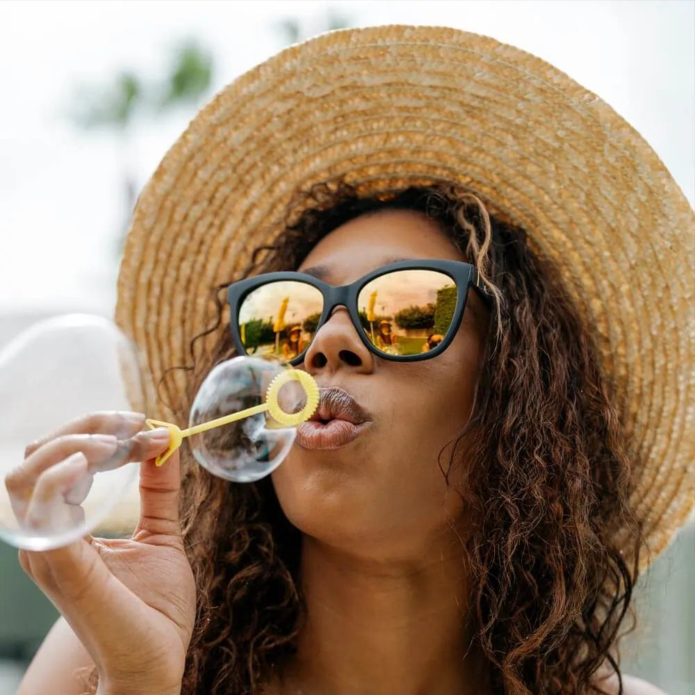 Sophisticated without being snobbish, Knockaround Deja Views are classic oversized sunglasses straight out of an old Hollywood movie. Matte black frames with a subtle cat eye present a sleek backdrop to the polarized rose gold lenses that offer full coverage. The best part about our Deja Views shades (besides how good they look) is that they work with any and all face shapes, so no matter what, you’ll look like a million bucks.