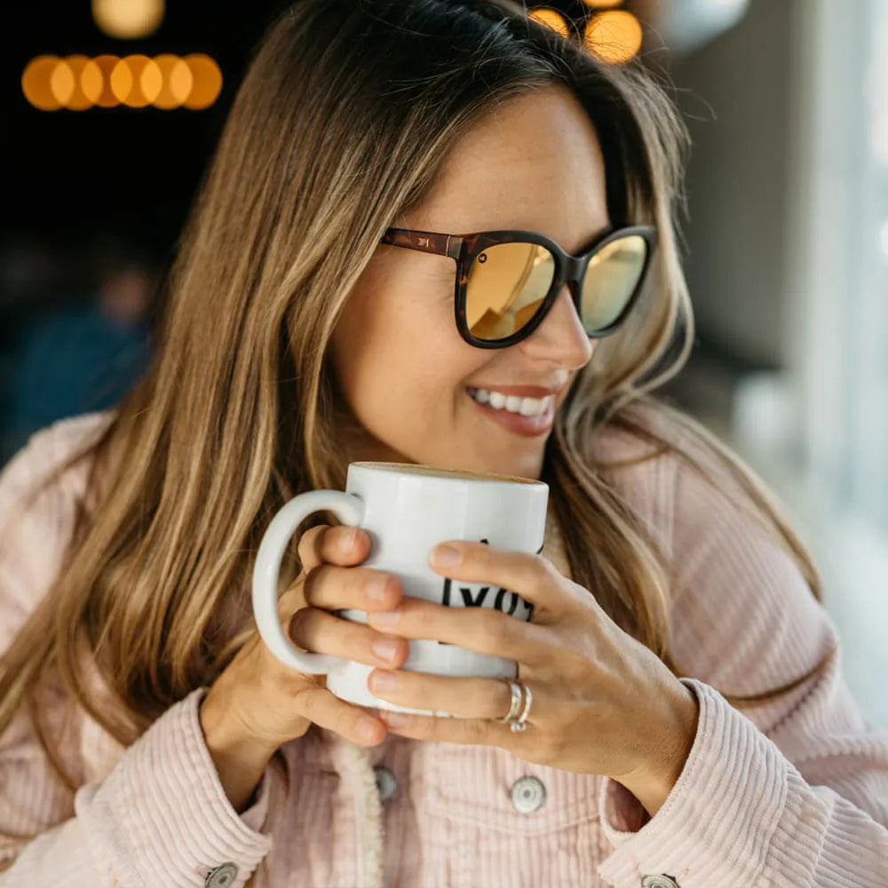 When you’re on the cutting edge of the fashion scene, your sunglasses need to be able to keep up. Fortunately, these polarized Deja Views shades are perfectly suited to the task. Taking cues from sophisticated oversized shades, these matte tortoise shell sunglasses arch into a hint of cat-eye and are accentuated by the lovely polarized rose gold lenses and K logos. Fashion can be functional, and the FDA compliant, impact resistant lenses prove it.