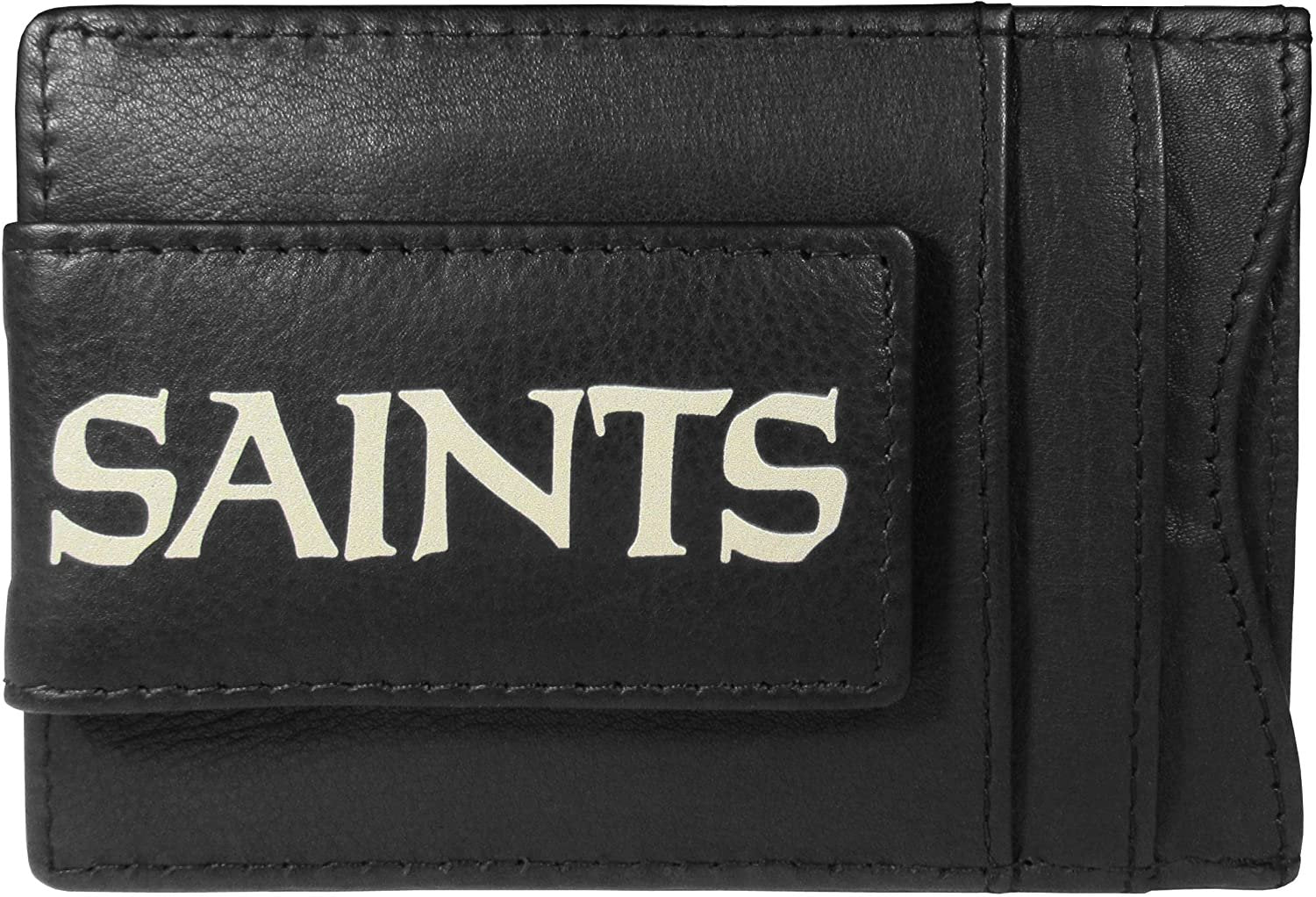 This super Slim leather wallet lets you have all the benefits of a money clip while keeping the organization of a wallet. On one side of this front pocket wallet there is a strong, magnetic money clip to keep your cash easily accessible and the new Orleans Saints team logo on the front. The versatile men's accessory is a perfect addition to your fan apparel.