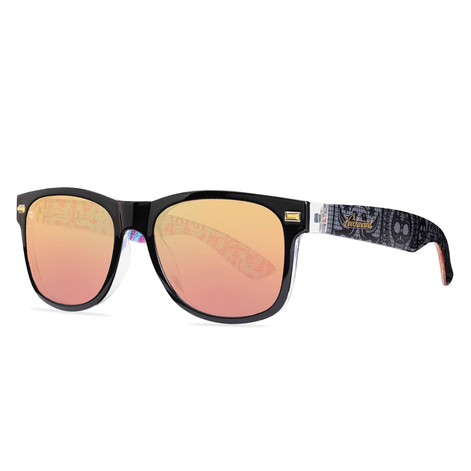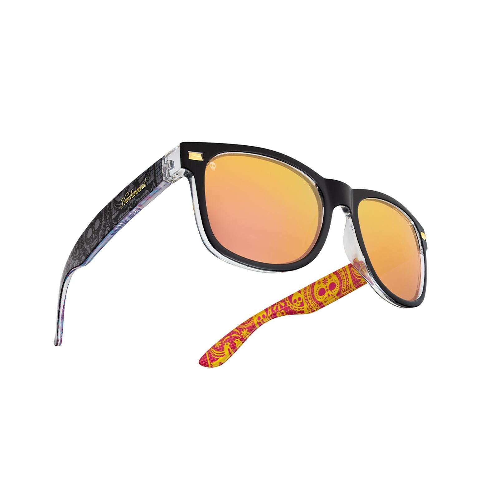 The Otra Vida Fort Knocks sunglasses highlight the most vibrant parts of this life as we know it. Gold hardware and polarized sunglass lenses (complete with UV400 protection and impact resistance) call back to the blazing memories you’ll never forget, while the neon sugar skull pattern on the frame interior reminds us all that we’re here for a good time, not a long time. Outer black frames and grey sugar skull etching exude a more serious vibe from the outside.