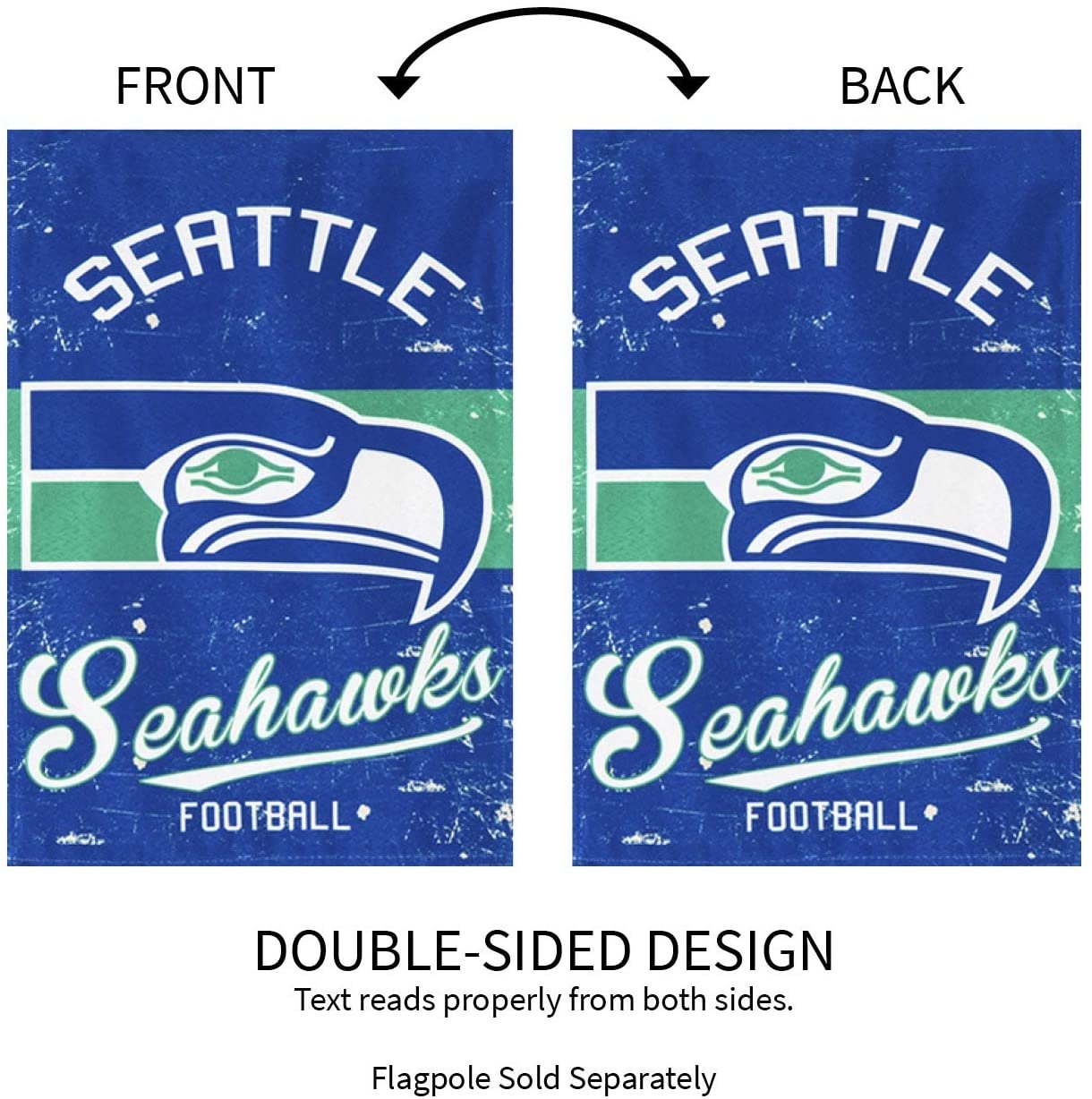 Seattle Seahawks Premium Garden Flag Banner, Double Sided, Retro Vintage Style, Linen, 13x18 Inch