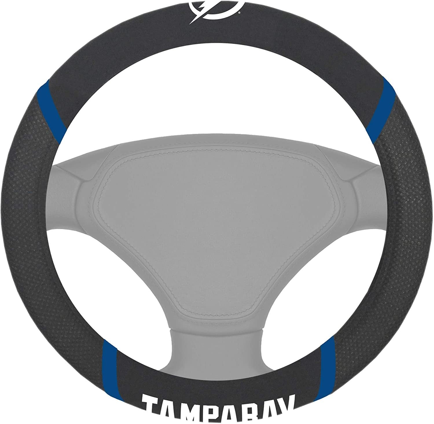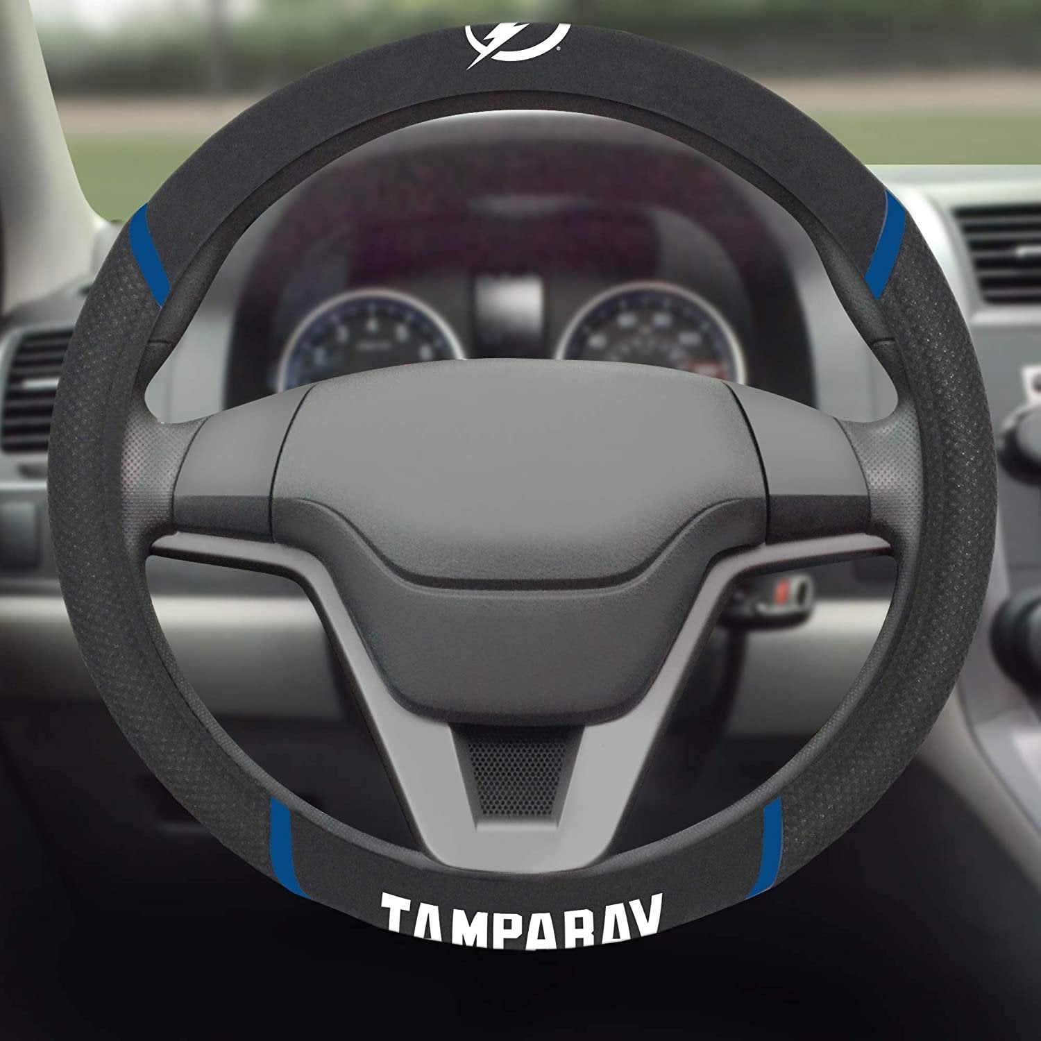 Tampa Bay Lightning Steering Wheel Cover Premium Embroidered Black 15 Inch