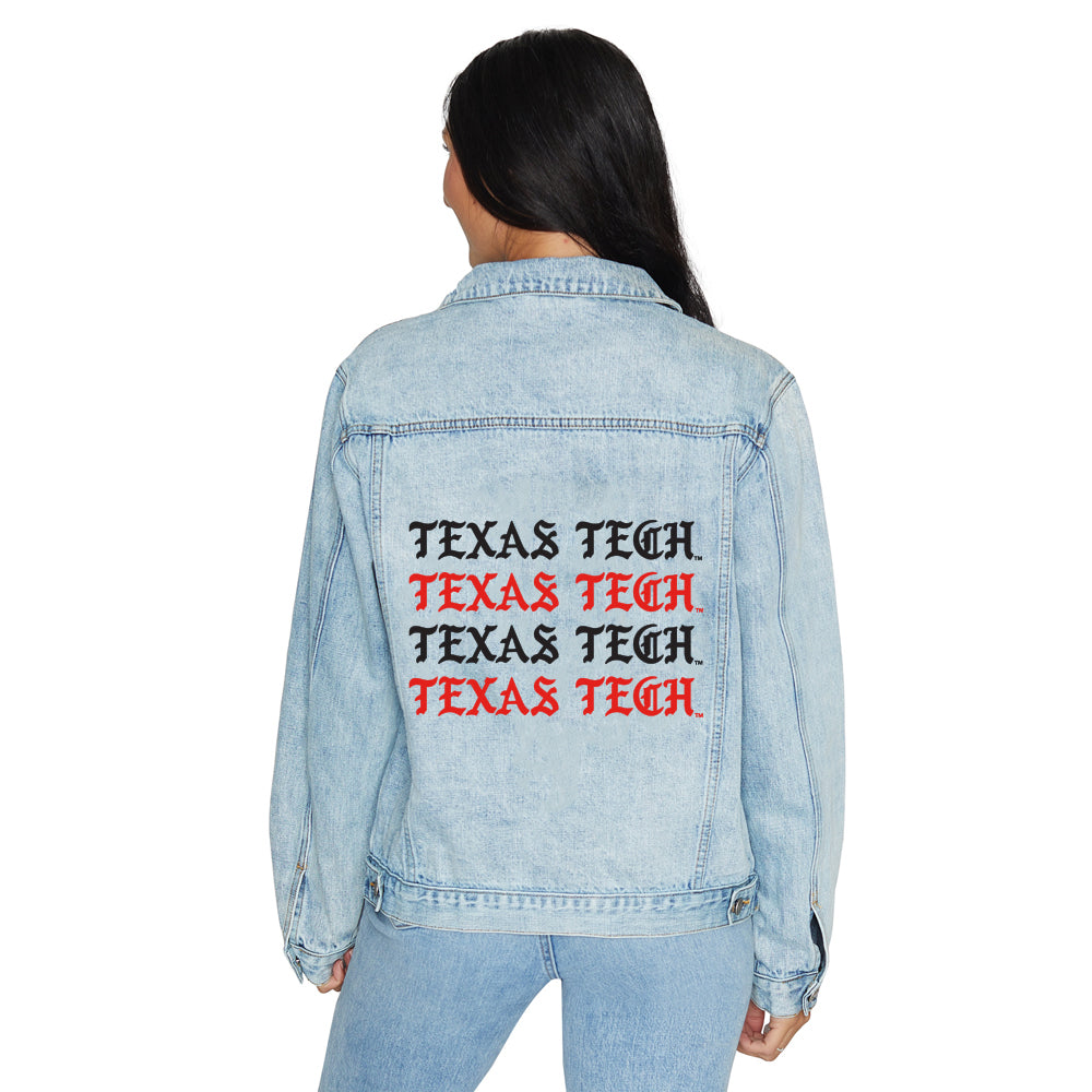 TEXAS TECH!! Obsessed with our new Texas Tech Denim Jacket! Distressed denim jacket complements any outfit! Super cute and comfy! Pair with your favorite pair of black jeans or our Texas Tech Game Day Skirt. Perfect for a night out or everyday.