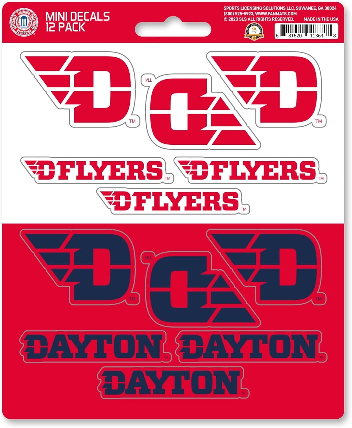 University of Dayton Flyers 12-Piece Mini Decal Sticker Set, 5x6 Inch Sheet, Gift for football fans for any hard surfaces around home, automotive, personal items