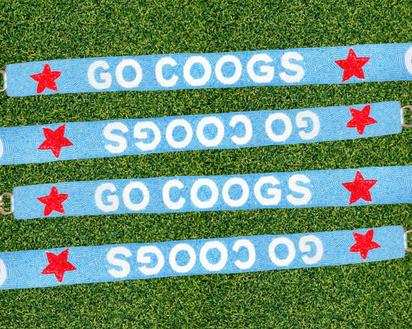 Introducing our handmade beaded purse strap, perfect for showing off your love for the University of Houston and their iconic rallying cry, "Go Coogs" Perfect with a clear bag for game day.