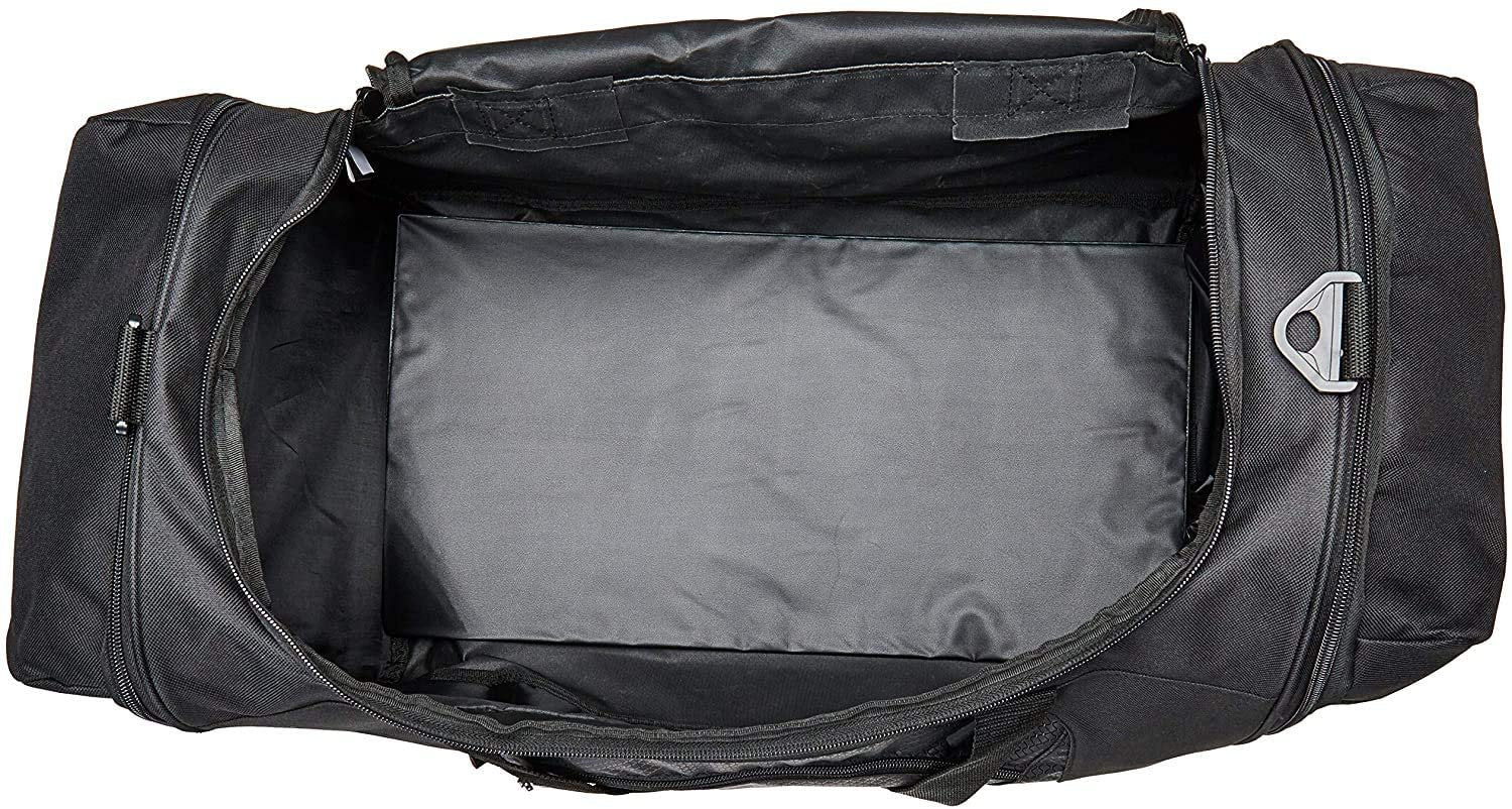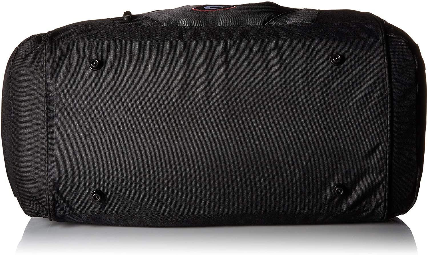 100% Polyester Imported Embroidered NFL logo on side zippered pocket; screen print logo on side; screen print wordmark on top One large main compartment; large zipper pocket; 3 exterior pockets; ventilated wet/dry pocket; securely latched handles; detachable and adjustable shoulder strap Measures 20”L x 11.5”W x 13”H Spot clean only Made of 600D Polyester