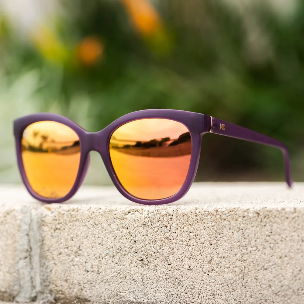 Velvet Royale Deja Views don’t just make a statement—they make sure you don’t have to. These oversized, purple frames captivate you with velvety confidence, while polarized rose gold lenses offer just the right amount of cover for every unapologetic side-eyes or looks that say, “not today.” A touch of rose gold K detailing bring the drama, keeping you effortlessly cool and completely unbothered.