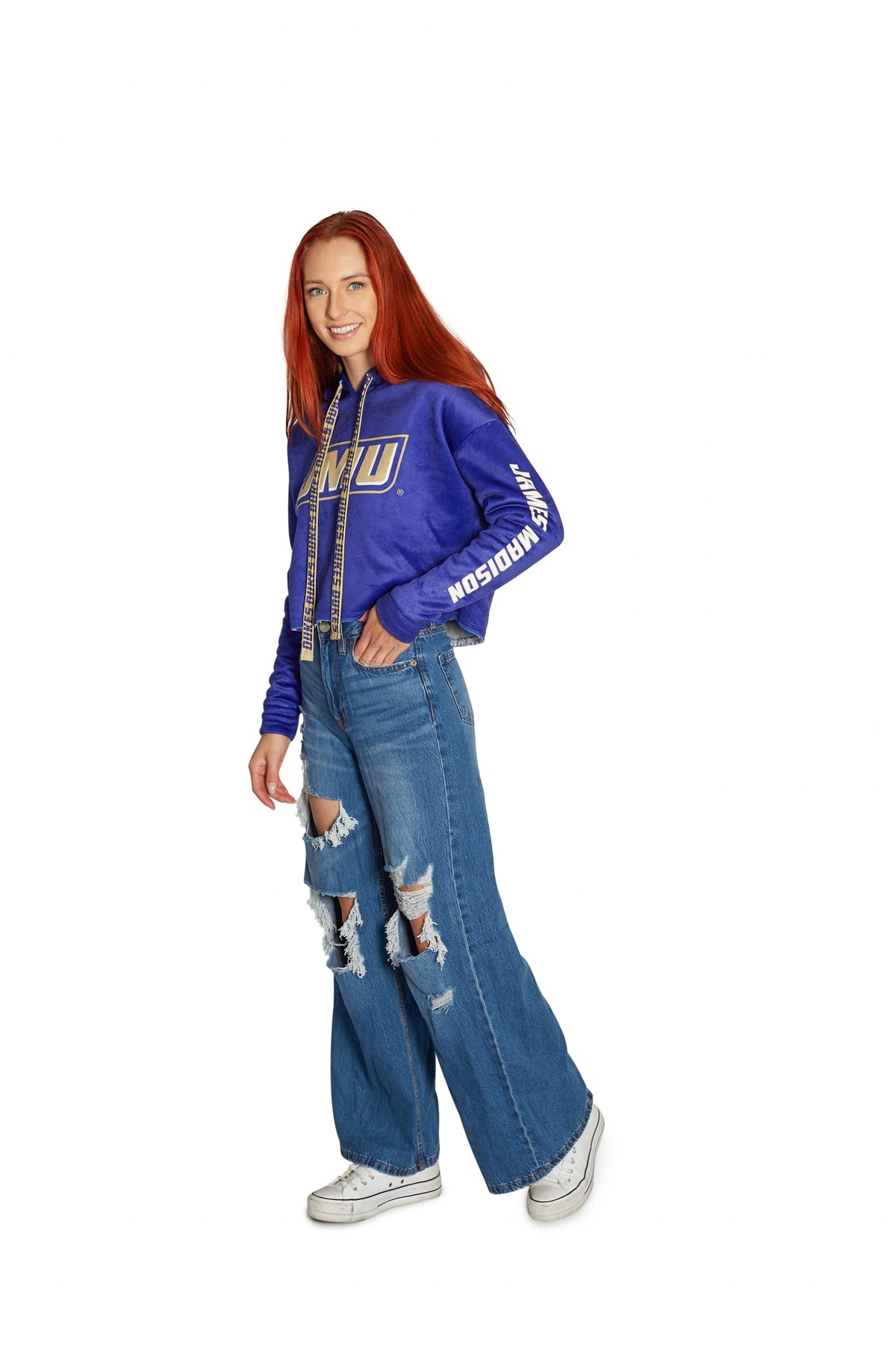 This super flattering JMU Varsity Furry Hoodie is perfect for college game day! Our James Madison University Varsity Furry Hoodie's soft and plush fabric makes it the most comfortable sweatshirt to wear anytime. You will never want to take this ultra soft hoodie - soft exterior with a super soft and fluffy sherpa fabric inside the entire hoodie. The high quality fabric and design will make this hoodie your all time favorite for years to come!