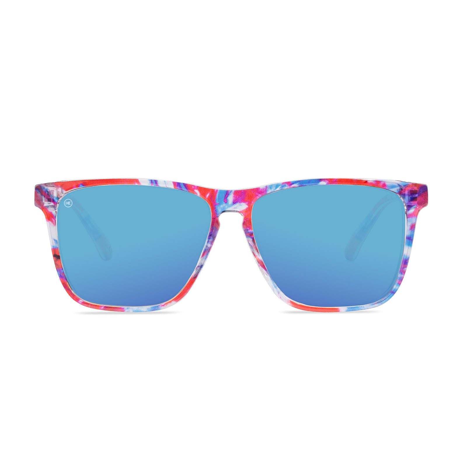 Speed into summer with our Live Free or Tie Dye Fast Lanes, where celebration meets style in a whirlwind of color. The hypnotic red and blue tie dye pattern wraps around crystal clear arms like a visual anthem to freedom, while striking aqua blue lenses reflect your independence from ordinary eyewear. Tucked inside each pair's custom microfiber tie dye pouch, these conversation starters are engineered for those who prefer to stand out at summer gatherings. Turn heads while flipping burgers—these shades were born to celebrate.