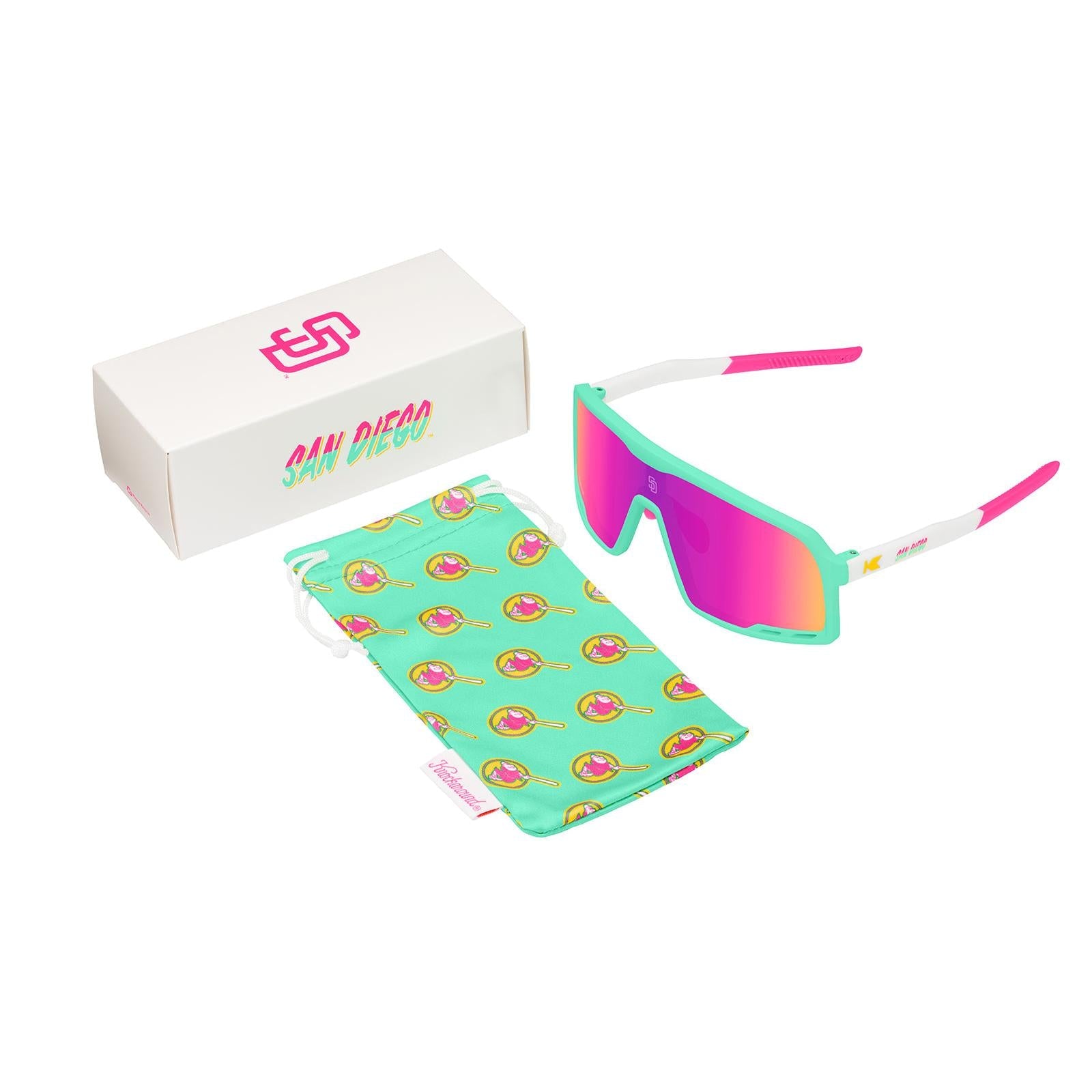 Capture the laid-back coastal energy of America's Finest City with our San Diego City Connect Campeones. The vibrant mint green frame with pink accents channels the city's beachside vibe while delivering serious performance. Engineered with Knockterra™ lenses for enhanced clarity and durability, these shades handle everything from the Petco Park sun to post-game adventures in the Gaslamp Quarter. The lightweight wraparound design provides full coverage with minimal distortion, while adjustable nose grips ensure they stay perfectly positioned through the full nine innings.