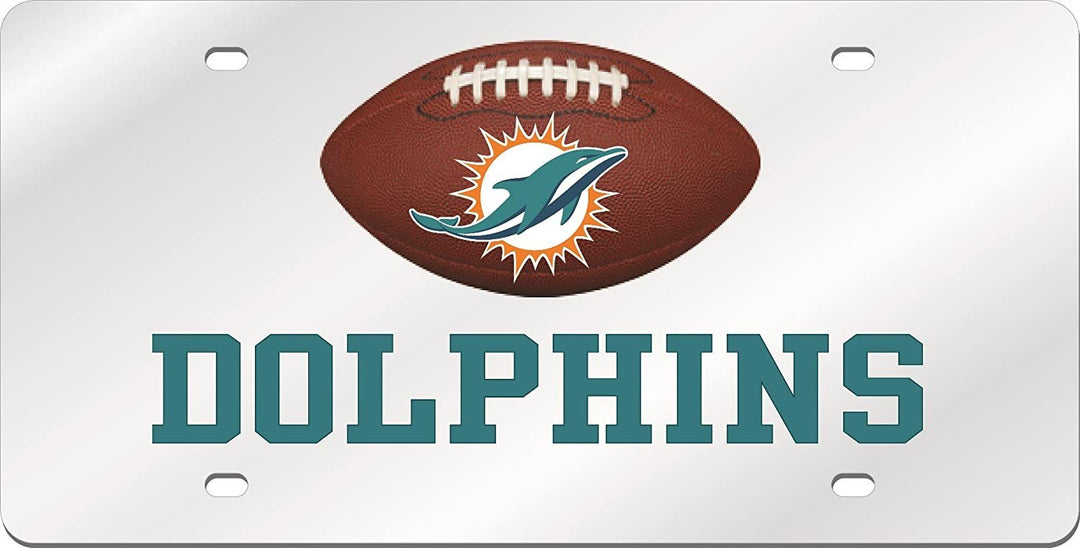 Miami Dolphins Premium Laser Cut Tag License Plate, Football, Mirrored Acrylic, Inlaid, 12x6 Inch