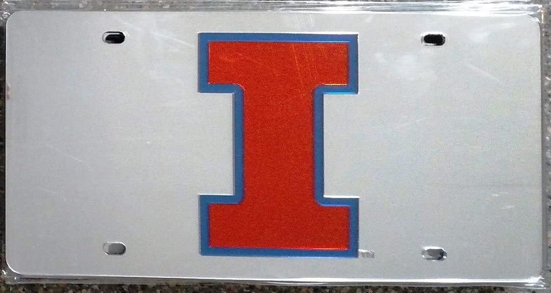 University of Illinois Fighting Illini Premium Laser Cut Tag License Plate, Mirrored Acrylic, Inlaid, 12x6 Inch