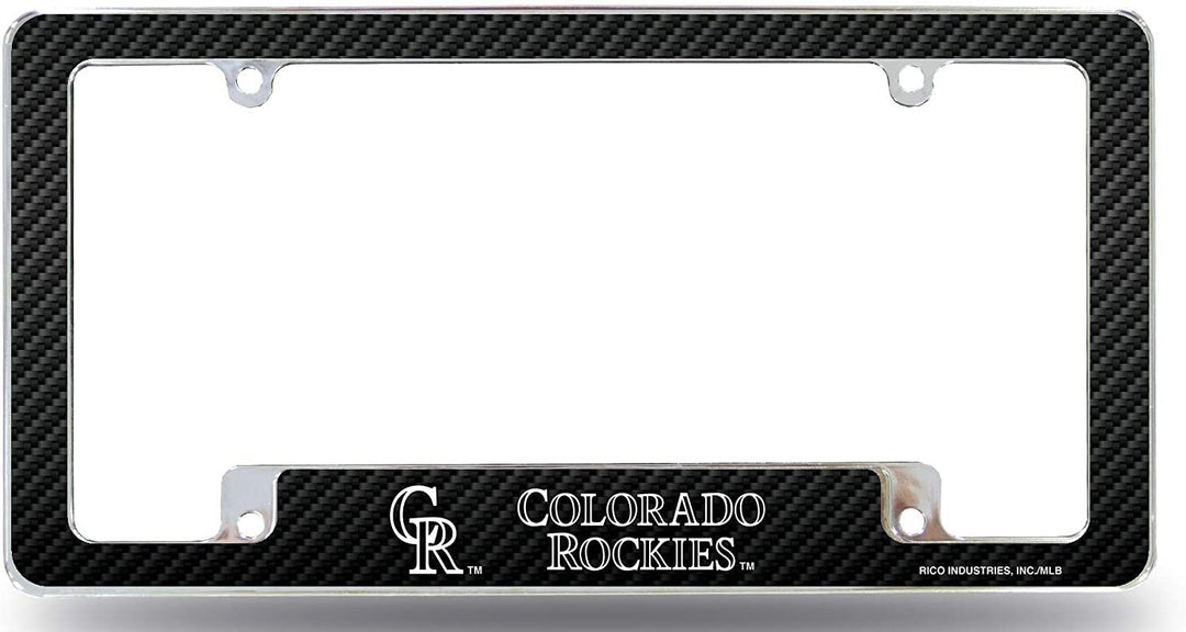 Colorado Rockies Metal License Plate Frame Chrome Tag Cover, Carbon Fiber Design, Heavy Duty, 12x6 Inch