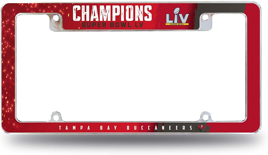 Tampa Bay Buccaneers Super Bowl LV Champions Metal License Plate Frame Tag Cover, All Over Design, 12x6 Inch