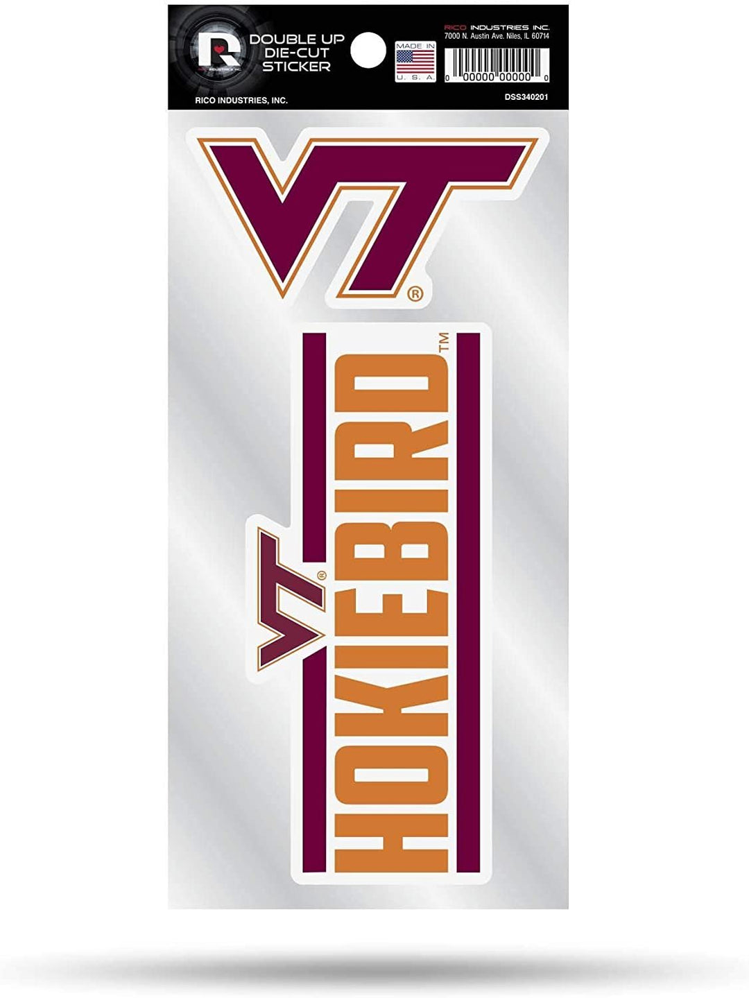 Virginia Tech University Hokies 2-Piece Double Up Die Cut Sticker Decal Sheet, 4x8 Inch