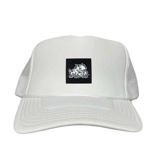 Introducing the Black Label Series Horned Frog Logo Hat from Last Stand Hats! This stylish hat is perfect for showing off your TCU spirit. It comes in a choice of a Curved Bill Mesh Snapback, a Flat Bill Mesh Trucker, or a casual Dad hat style. It has the iconic Horned Frog Logo on a classic Black Label displayed prominently on the front panel. Show your TCU pride with this stylish and comfortable hat!
