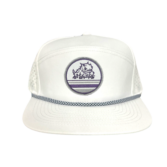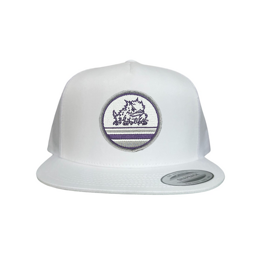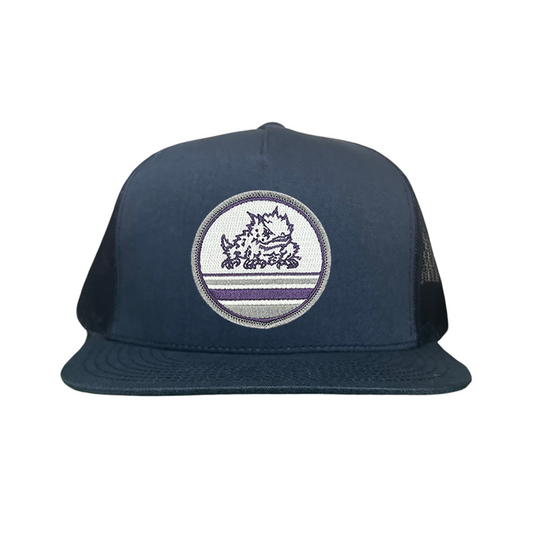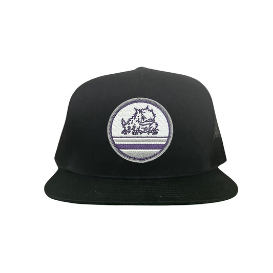 Show your TCU school spirit and stand out from the crowd with Last Stand's Horned Frog Circle Line hat! This stylish hat is designed with a Curved Bill Mesh Snapback for a classic look, a Flat Bill Mesh Snapback for a modern touch, or a more comfortable, casual look with a Dad hat. This hat is perfect for any occasion and features the TCU Horned Frog prominently on a circle line patch on the front of the hat.