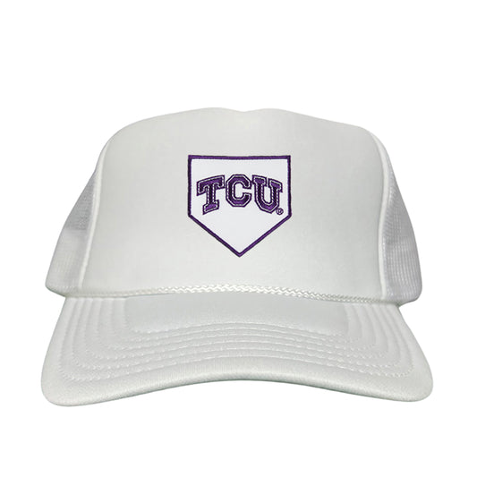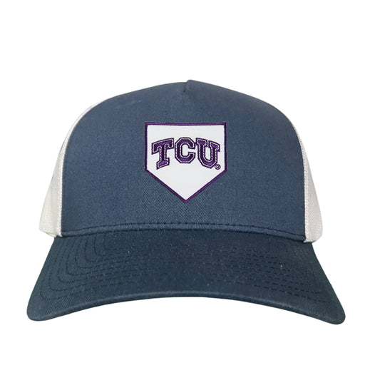 Introducing Last Stand Hats' TCU Horned Frogs Baseball Home Plate / Hat. This stylish hat is perfect for any TCU Horned Frogs fan. It comes in a choice of a Curved Bill Mesh Snapback, a Flat Bill Mesh Snapback option and a Dad hat design. Show your team pride with this Last Stand Hats original. It is the perfect way to represent TCU in style.