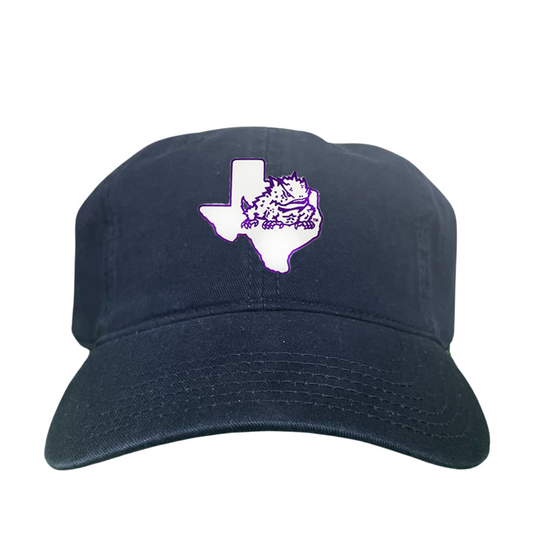 Show your team spirit with this unique TCU Horned Frog Rubber Patch. This hat is perfect for real fans, featuring a unique and bold design. Showcase your support for your favorite team with this stylish and comfortable hat.