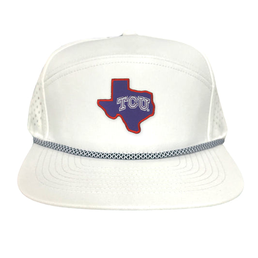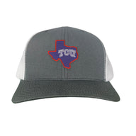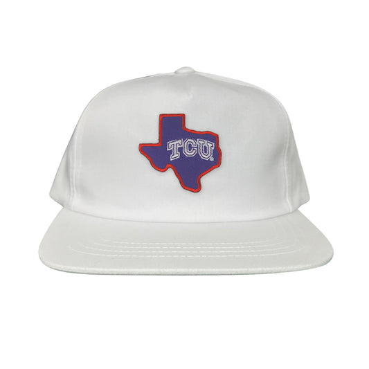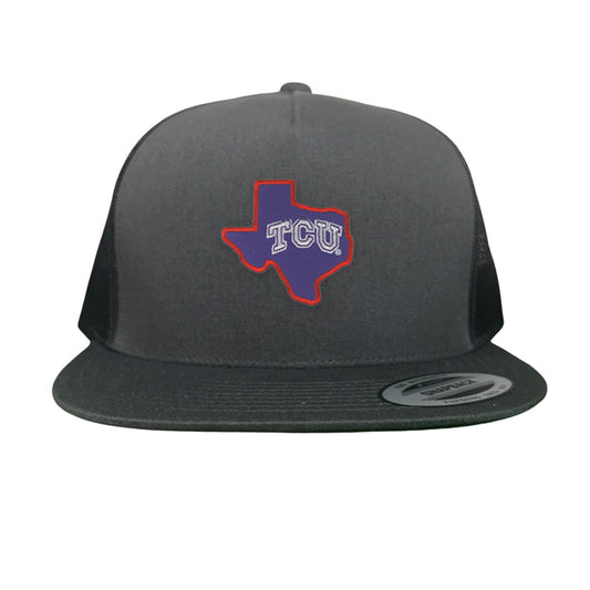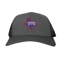 Introducing Last Stand's State of Texas TCU hat! Represent both the State of Texas and the TCU Horned Frogs with this stylish hat. It comes in a choice of Curved Bill Mesh Snapback, a Flat Bill Mesh Snapback, or a casual Dad hat style. All featuring vivid colors and bold lettering with a comfortable, adjustable fit, it is the perfect way to show your support for TCU Get your Last Stand TCU Hat today!