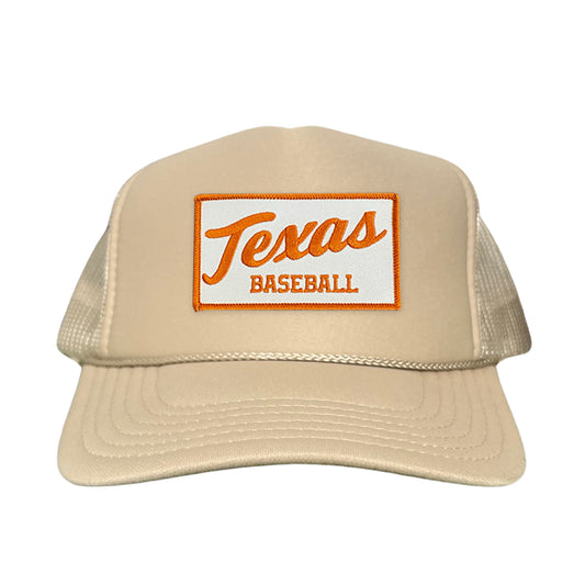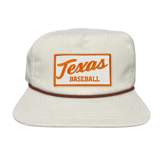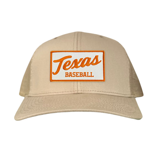 Show your Texas Longhorn pride with Last Stand Hats' Texas Script Baseball Hat! This stylish snapback features a curved bill, mesh back, and adjustable snap closure for a comfortable fit. Texas is written in orange script with Baseball printed underneath proudly displayed on the front panel, making this the perfect accessory for any University of Texas fan. Show your school spirit with the Last Stand Hats' Texas Script Baseball Hat!