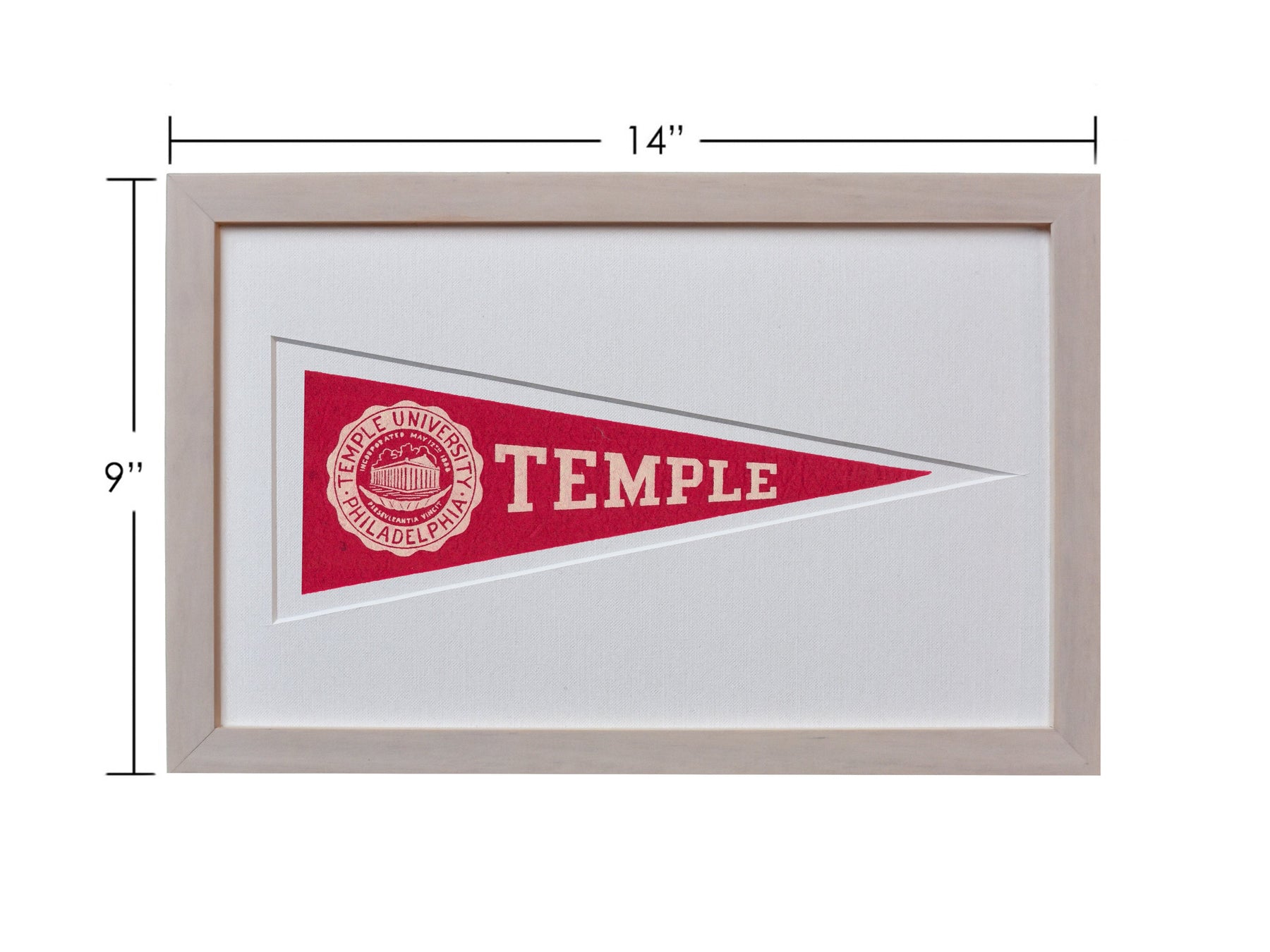 A rare piece of vintage Temple history from the 1950s available in your choice of a Black, Light Wood, or Mahogany frame. Framed in U/V glass and cut mat with the history of Hormel Pennants on the back.